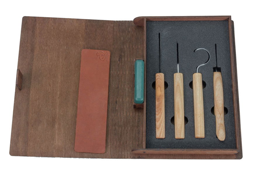 You'll notice that it's small but mighty when you hold the 4-piece carving knife set by BeaverCraft in your hands. With the four different knives you can process a variety of projects coarse and fine. The durable carbon steel blades are particularly sharp and fit comfortably in your hand with the ergonomic handles. Even curves and fine details can be easily worked out and ensure precise results. A great gift for beginners and the pros.