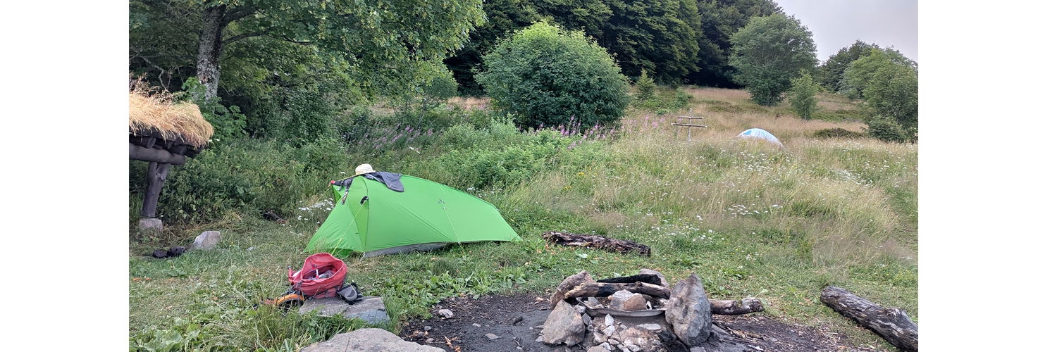 In den Vogesen gibt es mehrere einfache Holzhütten mit Bänken, Tisch und manchmal sogar einem Holzofen, in denen man unangemeldet und kostenfrei nächtigen darf. Klasse! Ich baue mein Zelt nahe einer solchen Hütte auf. Jugendliche haben in der Hütte den Ofen etwas unprofessionell angezündet und es ist sehr verraucht. Aber meine nassen Socken trocknen. In der Nacht hat es nur 7 Grad! Wie gut, dass Aneto als Wärmflasche aushilft!