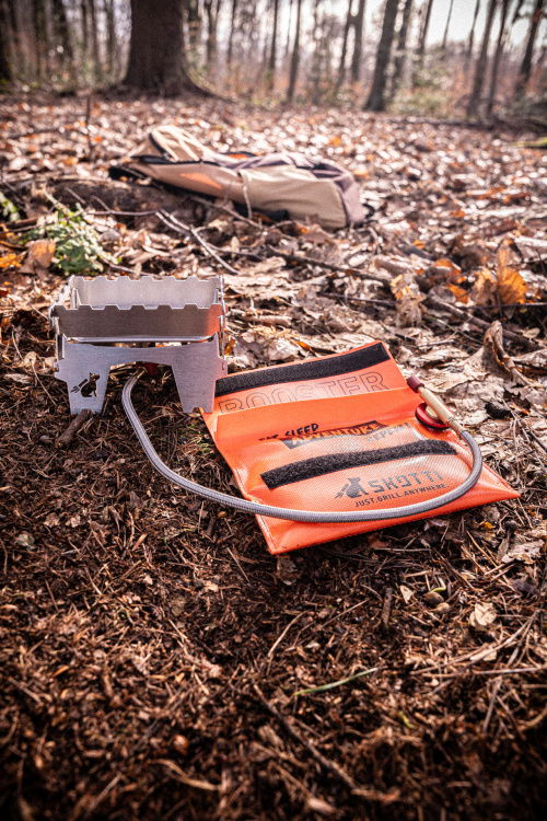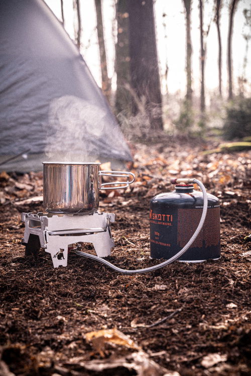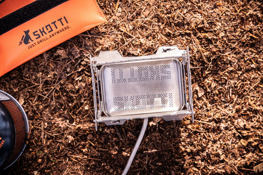 The Skotti Booster is a compact camping stove that delivers full power despite its small size. With an output of 2.1 kW, it takes just four minutes to bring one liter of water to the boil. It is completely independent of the weather and works perfectly even in rain or snow. Wherever your next outdoor adventure takes you, the Skotti Booster goes with you and is hardly noticeable thanks to its low weight. Simply fold it up after use and stow it away compactly in the pack bag supplied. For a very special barbecue experience, you can simply combine the Booster with the Skotti Mini (sold separately) compact barbecue.