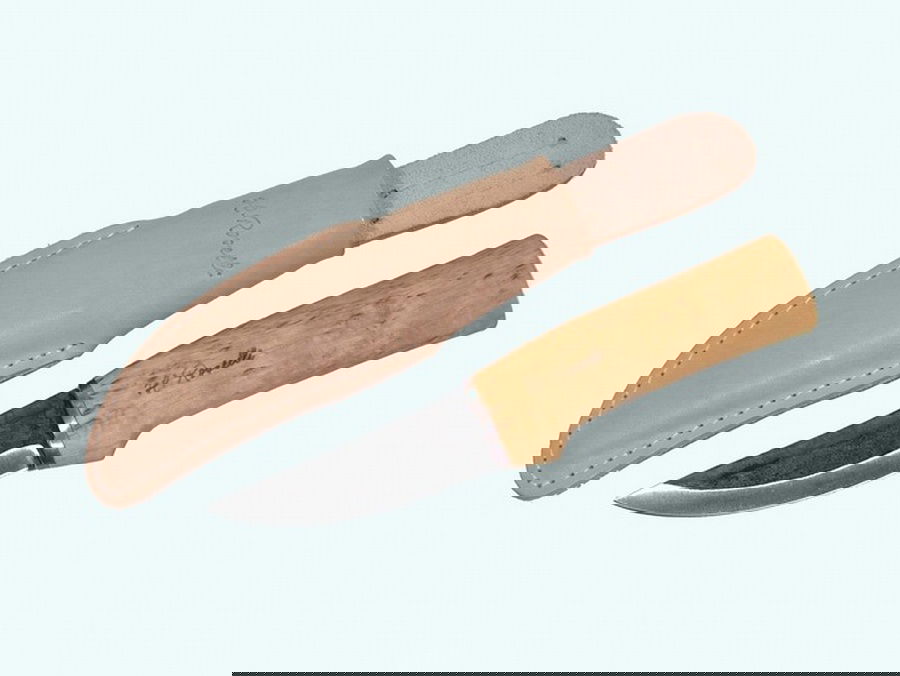 Eines der ersten Messer die Heimo Roselli vor über 30 Jahren entwickelte. An dem Hunter R100 Messer gibt es keinen überflüssigen Schnick-Schnack und das Messer traditionell gehalten. Das Messer liegt sehr angenehm in der Hand. Dies liegt nicht nur an der mit Leinöl behandelten Maserbirke sondern auch an dem recht großen Griff. Durch diesen können Sie jegliche Schneidaufgaben sicher und fest umschlossen durchführen. Die Klinge lässt sich sehr gut schärfen und ist sehr schnitthaltig. Der Klingenrücken ist mit 3,2mm nicht zu breit, gibt der Klinge aber die benötigte Stabilität. Besonders schön ist die verbliebene Oxidschicht, die durch das Schmieden und dem anschließendem Härten entsteht und dank der Philosophie von Heimo Roselli nicht entfernt wird. Zum sicheren Verwahren wird das Messer in einer Lederscheide ausgeliefert, die mit einer Gürtelaufnahme versehen ist. Dieses Outdoormesser wird von vielen Menschen die oft in der Natur sind bevorzugt. Ob zur Jagd oder einfach als das Messer was Sie draußen dabei haben.