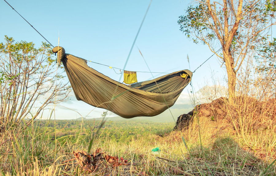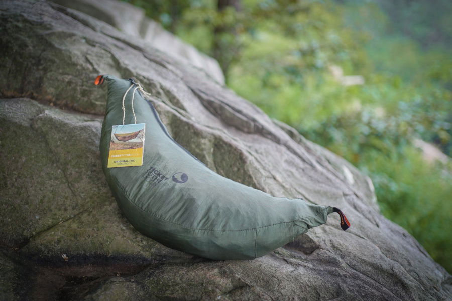 Es dauert nicht lang, bis Du in die wohlverdiente waagerechte Position gelangst: Das halbmondförmige Express Setting Bag fungiert nicht nur als platzsparende Packtasche für die Hängematte, es ermöglicht Dir zugleich auch einen unglaublich schnelles und einfaches Aufhängen. Der Packsack muss dafür nur an dem ersten Aufhängepunkt eingehangen werden ohne die Hängematte auszupacken. Erst jetzt kannst Du den Reißverschluss der Packtasche öffnen und Deine neue Hängematte herausziehen, sie am zweiten Aufhängepunkt einhängen und schon bist Du fertig.