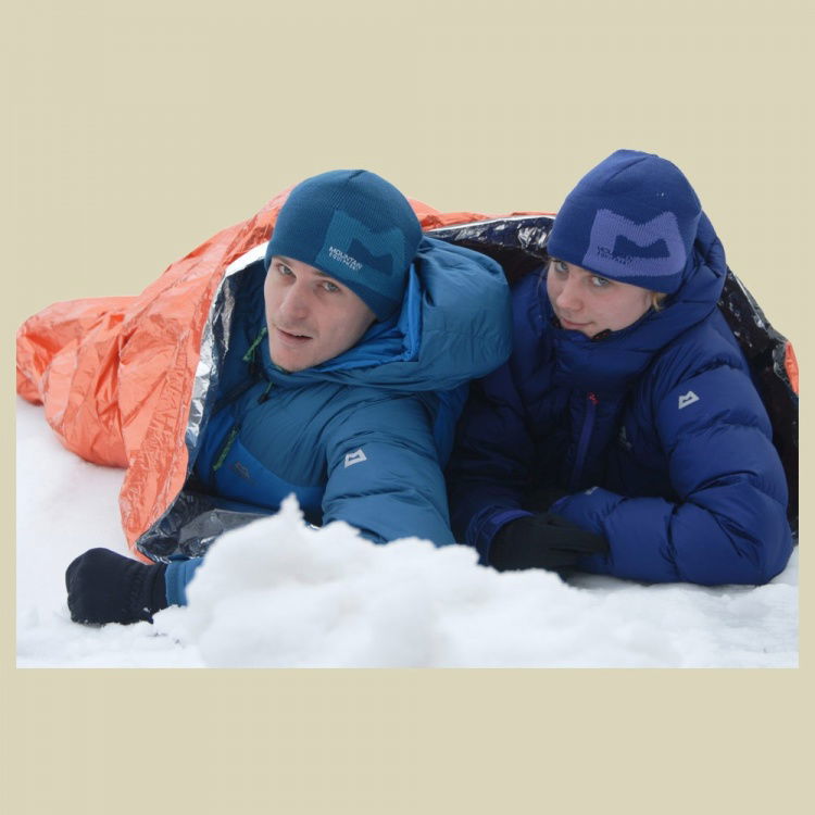 Ultraleichter Biwaksack für den Notfall: der Double-Bivi Ultralite von Mountain Equipment! Dieser extrem kleine und leichte Biwaksack ist ideal bei Wanderungen mit zwei Personen. Er gehört in jede Notfall-Ausrüstung und ist ein Muss bei jeder längeren Wanderung in den Alpen oder im Outback. Die Aluminium-Beschichtung auf der Innenseite der winddichten und wasserdichten Polyethylen-Folie reflektiert 90 Prozent der Körperwärmestrahlung und durch ihre Sackform ist die Folie gut für ein Not-Biwak geeignet. Im Packsack aus silikonisiertem Ripstop-Polyamid hat noch zusätzliche Notausrüstung wie zum Beispiel eine kleine Stirnlampe Platz.